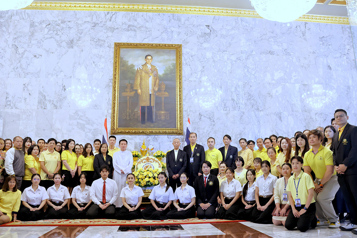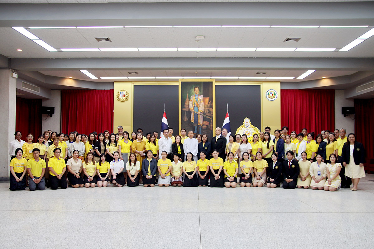 At Suvarnabhumi Campus, the community gathered in the King’s Room of the Cathedral of Learning. The service opened with the laying of a wreath, followed by a remembrance speech. The ceremony concluded in stillness, as participants stood together for 89 seconds of silence, a symbolic gesture echoing the years of His Majesty’s reign.