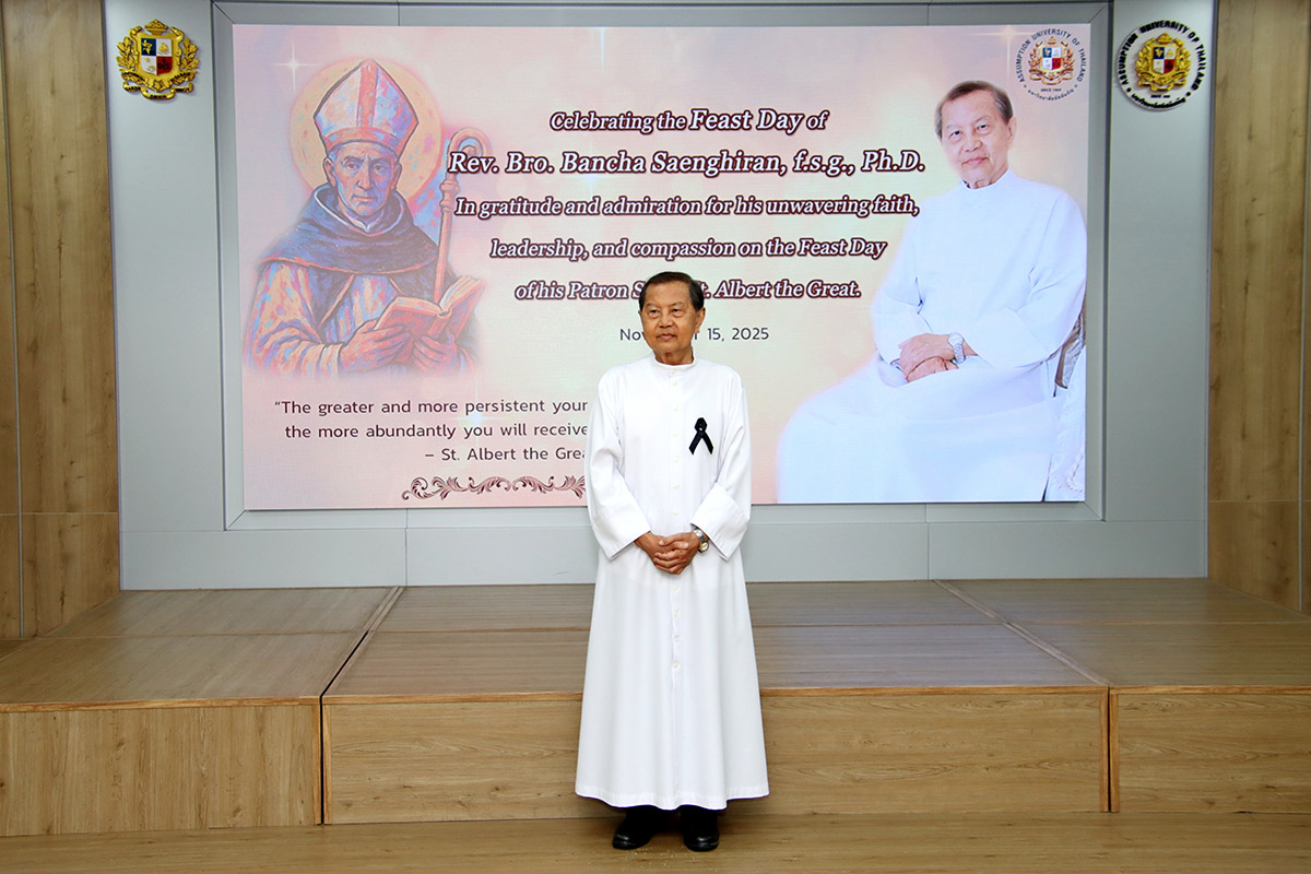 On the morning of Friday, 14 November 2025, Assumption University of Thailand (AU) convened its faculty, staff, students and invited guests in a distinguished ceremony to mark the eve of the feast day of St. Albert the Great and to celebrate the patronage of their Rector Magnificus, Rev. Bro. Bancha Saenghiran, f.s.g., Ph.D., for whom St. Albert serves as patron.