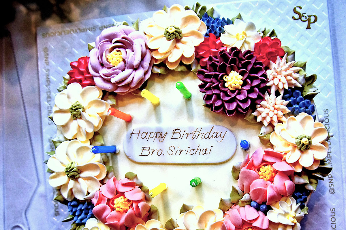 The morning’s program began with an assemblage at Salle d’ Expo, Hua Mak Campus, followed by warm birthday greetings and a heartfelt presentation of a bouquet by the Vice President for Academic Affairs symbolizing the University’s appreciation, after which a photo session captured moments of unity and celebration. The gathering concluded with snacks and drinks, offering a chance for fellowship and shared joy.